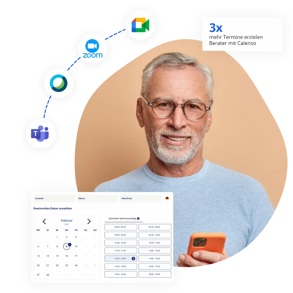 Beraten Sie Ihre Kunden und Interessenten ortsunabhängig mit dem DSVGO-konformen Videotool Calenso-Meet und profitieren Sie von der Flexibilität und der Zeitersparnis durch Online-Beratungen. Nutzen Sie dabei die nahtlose Integration in bekannte Videokommunikationsplatformen wie Zoom, Microsoft Teams oder Unblu und bieten Sie Ihren Kunden eine sichere und moderne Kommunikationsmöglichkeit.